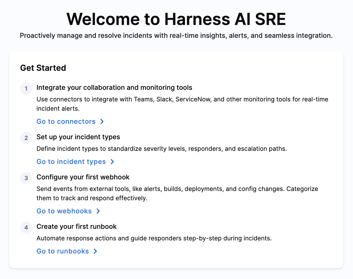 This guide introduced you to the core functionalities and setup of Harness AI SRE, from integrating monitoring tools to creating automated runbooks. To enhance your incident response capabilities and team efficiency, get the most out of Harness AI SRE's advanced features, including:
