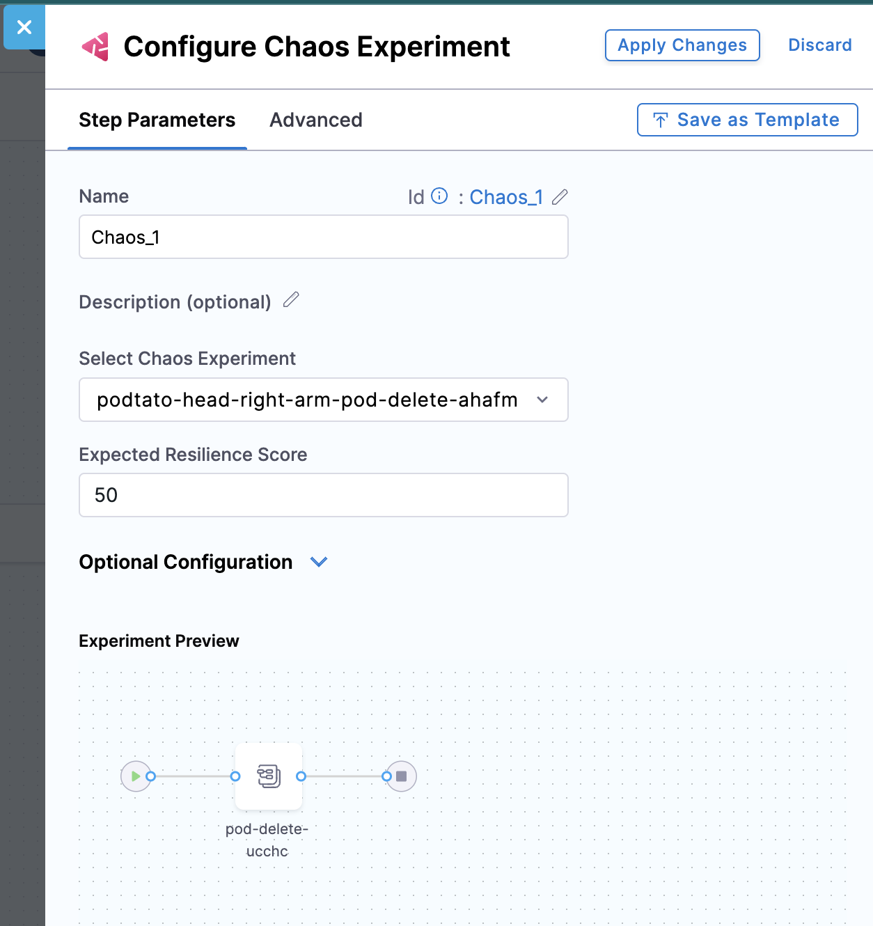 • Click Save to save the experiment to the Chaos Experiments page. You can add it to a ChaosHub later.