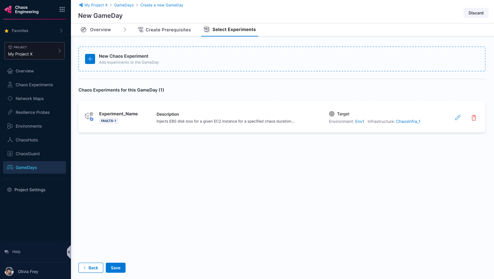 3. Add experiments to the GameDay and save it