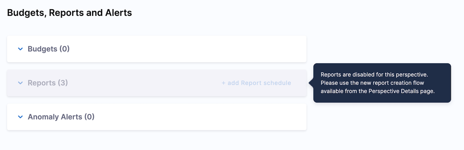 • If the Dynamic Perspective Reports feature is enabled for your account, CCM will disable the legacy report creation method from the Perspective Creation workflow.