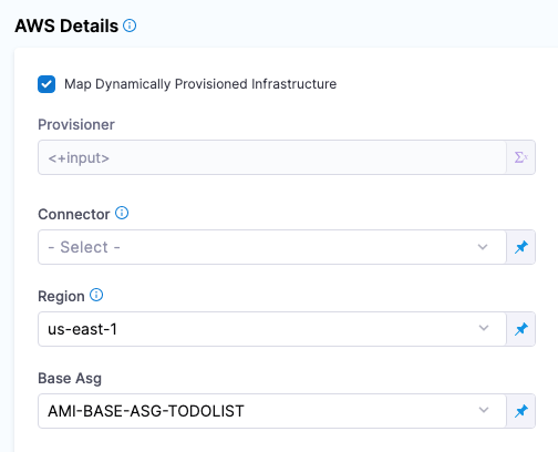 Harness fetches these AWS settings using the Harness AWS connector you have set up in the Infrastructure Definition in the Environment section of the stage.