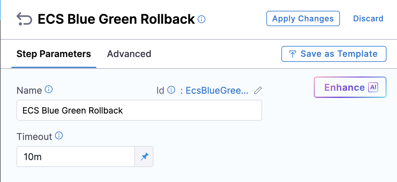 If you do not select the Add Traffic Shifting Steps checkbox, then you will have a Blue Green Deployment step group with steps Configure Blue Green Deployment and ECS Blue Green Swap Target Groups.