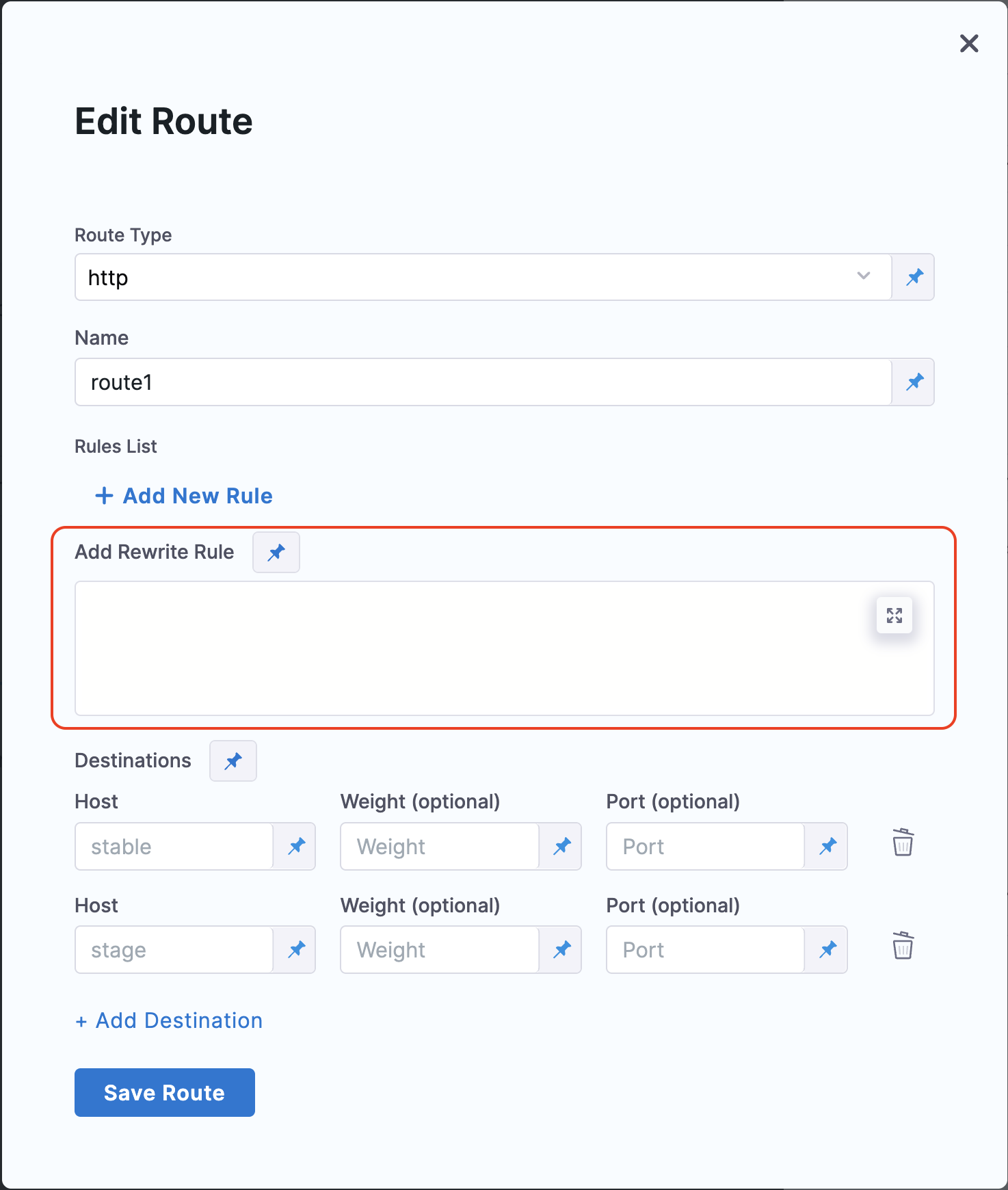 • Route Rules: This is the way incoming requests are filtered for the configured route destinations.