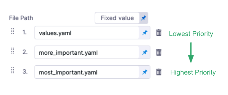 - Values YAML files can use a mix of hardcoded values and Harness expressions.