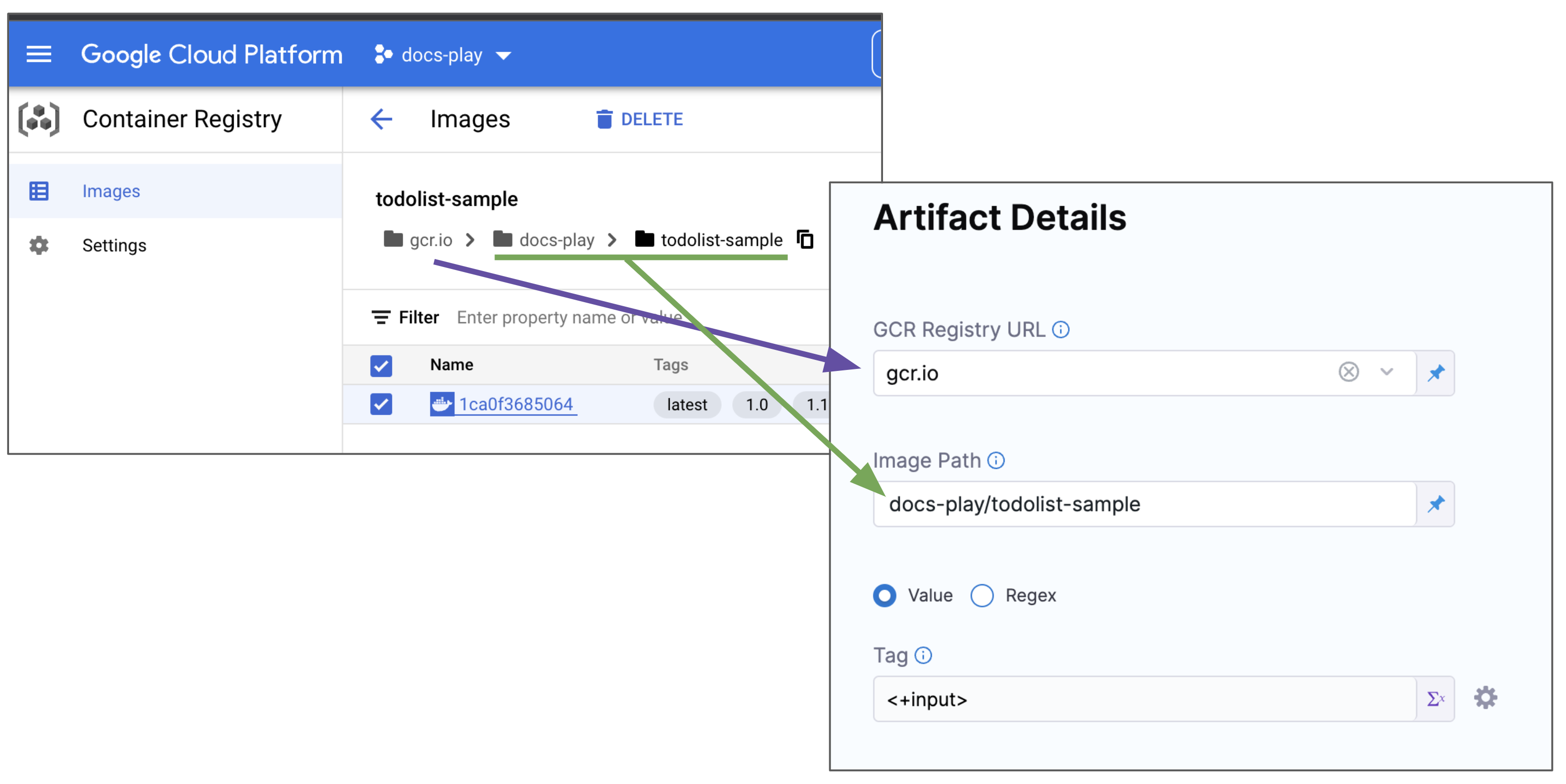 Here's a YAML example for a service with manifests hosted in Github and the nginx image hosted in Docker Hub.Example