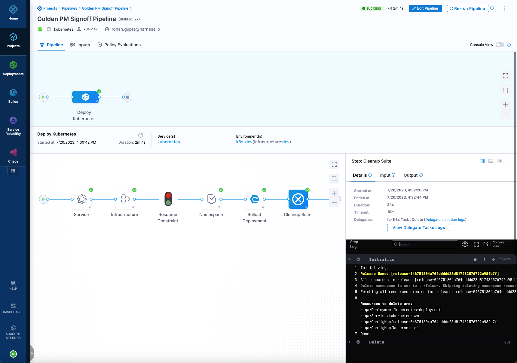 • A final cleanup step to delete the Kubernetes deployment at the end of the pipeline.
