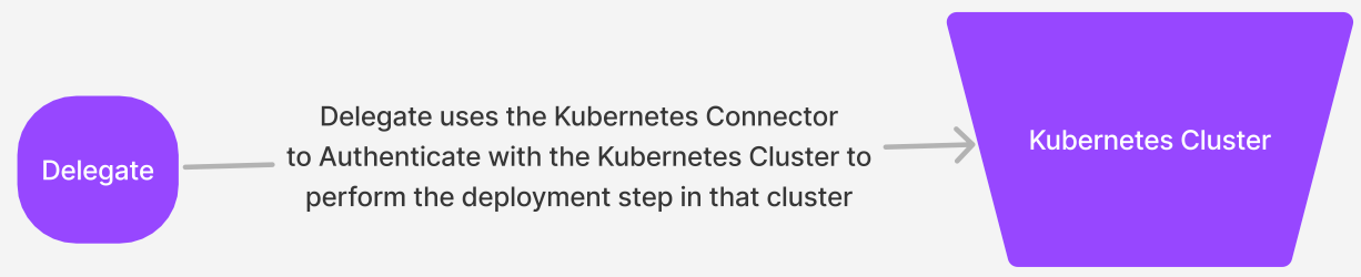 During execution of the Kubernetes Delete step, Harness selects the delegate that has access to the infrastructure definition connector and performs the Kubernetes delete step within that cluster.