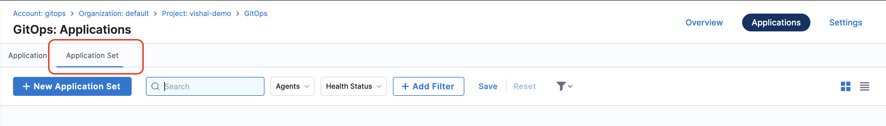 We recommend requesting the first-class ApplicationSet support feature flag for a better experience with enhanced UI, Service/Environment integration, and improved management capabilities. Contact Harness Support to enable it.