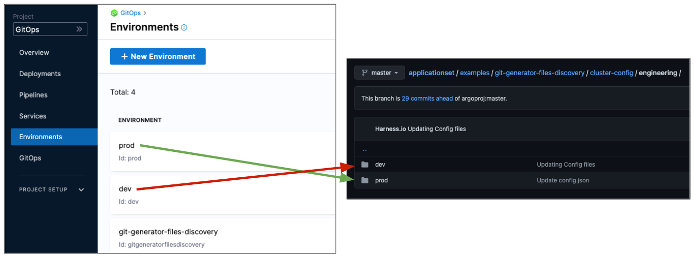 Name your Harness environments to match your Git directory structure. For example, if your Git paths are: