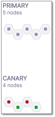Both the Primary and Canary nodes are displayed. Canary nodes are only visible after the deployment, while primary nodes are seen "Before" and "After" the deployment.