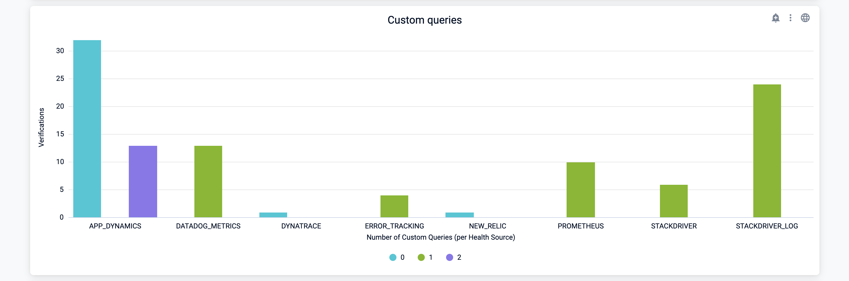 • Custom queries: Bar graph that breaks down custom queries on a per health source basis.