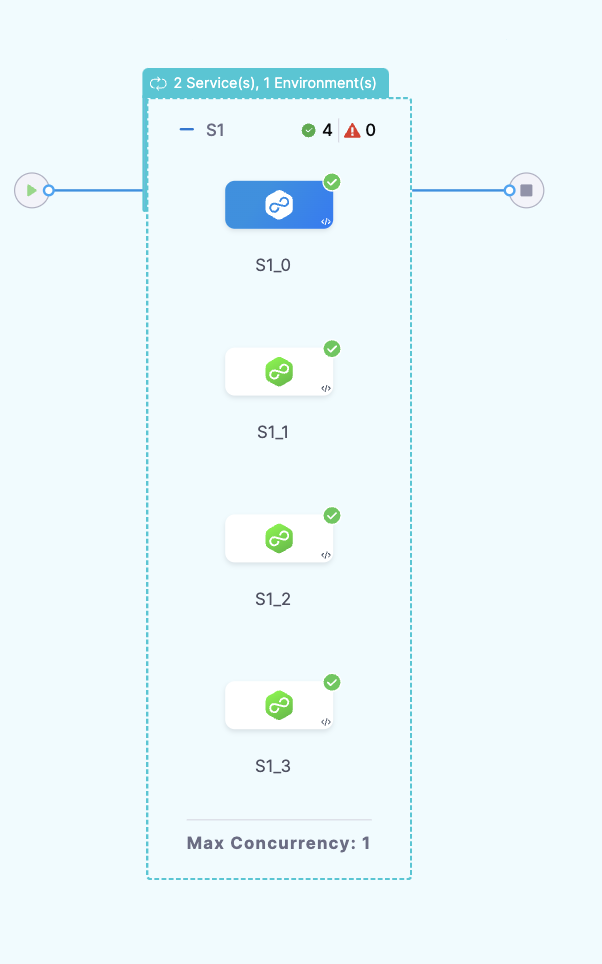 - After 1 (S1 I1) is deployed, then 3 (S1 I2) will be deployed sequentially (same service across different infrastructures).