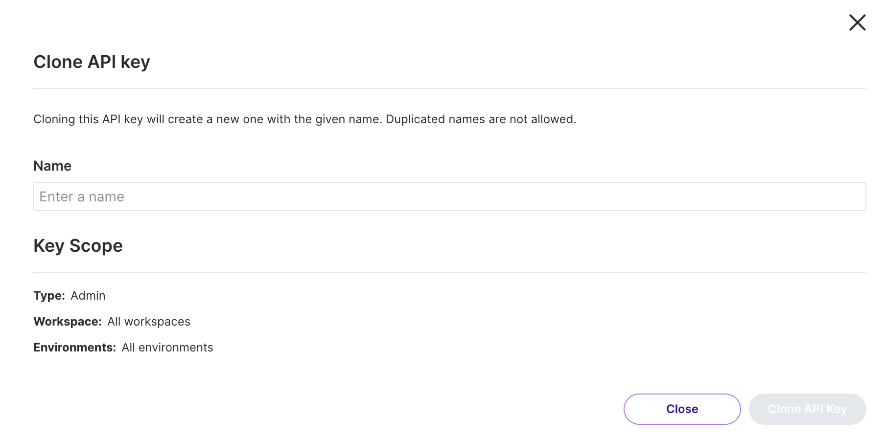 3. Enter a Name for the API key. Description and Tags are optional.