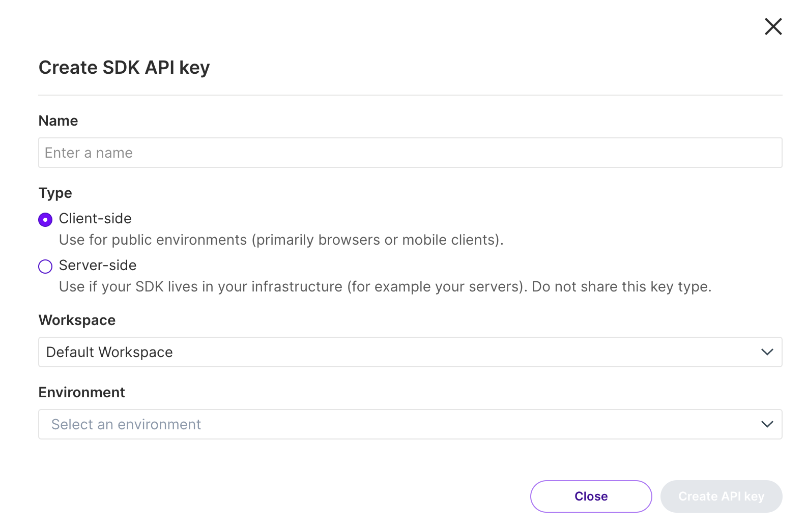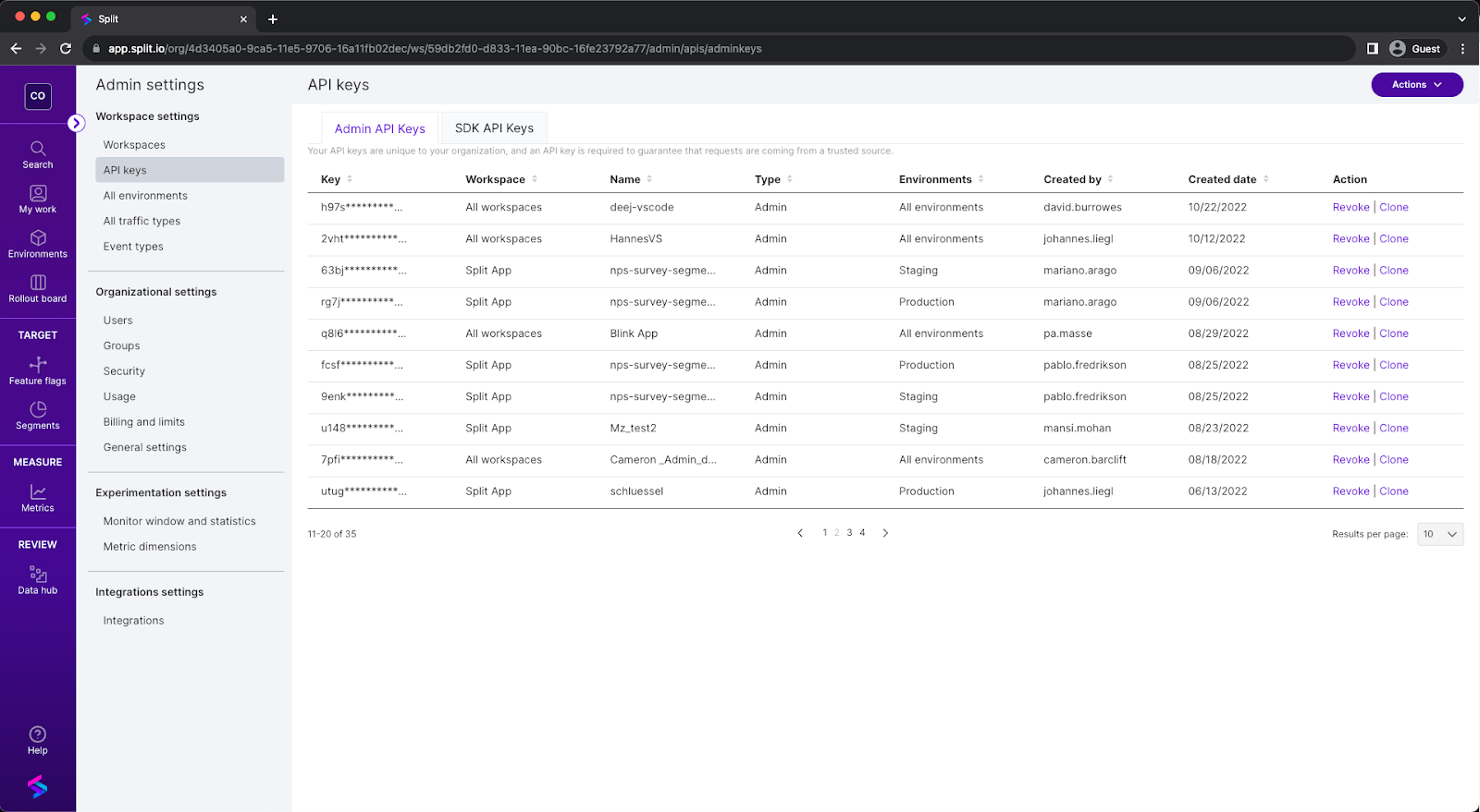 For more information about SDK API keys in Harness FME, see RBAC for Split Admins.