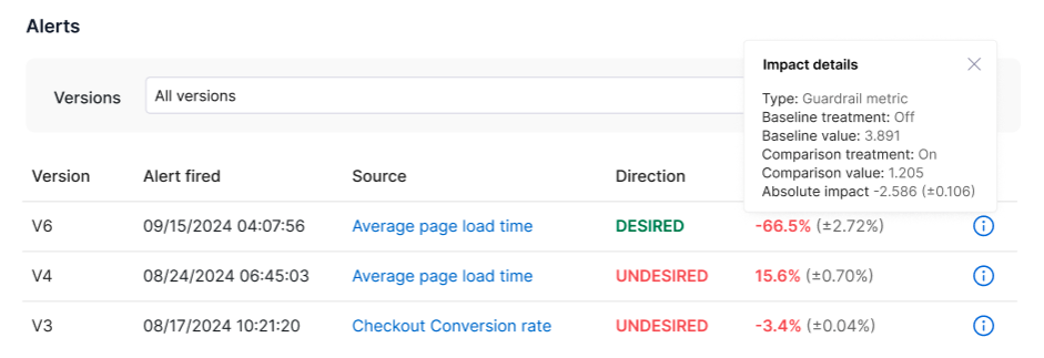 VersionThe version number of the feature flag that triggered the alert.