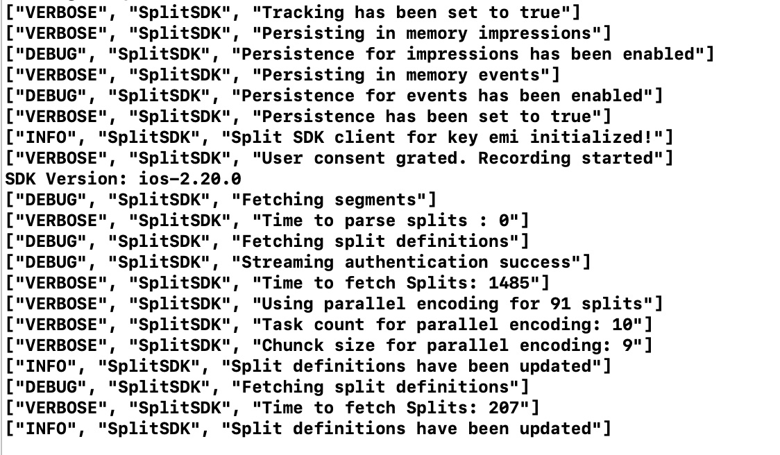 sdkReadyFromCache. This event fires once the SDK is ready to evaluate treatments. The SDK will use a locally cached version of your rollout plan from a previous session if available. In this case, the event fires almost immediately, since access to the cache is fast, but data might be stale. Otherwise, it fires together with thesdkReadyevent when the SDK downloads the rollout plan from Harness servers.sdkReady. This event fires once the SDK is ready to evaluate treatments using the most up-to-date version of your rollout plan, downloaded from Harness servers.sdkReadyTimedOut. This event fires if the SDK could not fully download the data from Harness servers (sdkReadyevent) within the time specified by thesdkReadyTimeOutproperty of theSplitClientConfigobject. This event does not indicate that the SDK initialization was interrupted. The SDK continues downloading the rollout plan and fires thesdkReadyevent when finished. This delayedsdkReadyevent may happen with slow connections or large rollout plans with many feature flags, segments, or dynamic configurations.sdkUpdated. This event fires whenever your rollout plan is changed. Listen for this event to refresh your app whenever a feature flag or segment is changed in Harness FME.