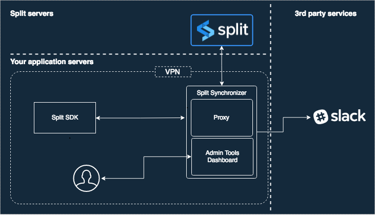 Once configured, the SDK routes all traffic through the Split Proxy, allowing it to serve requests locally without needing direct internet access to Split's public endpoints.