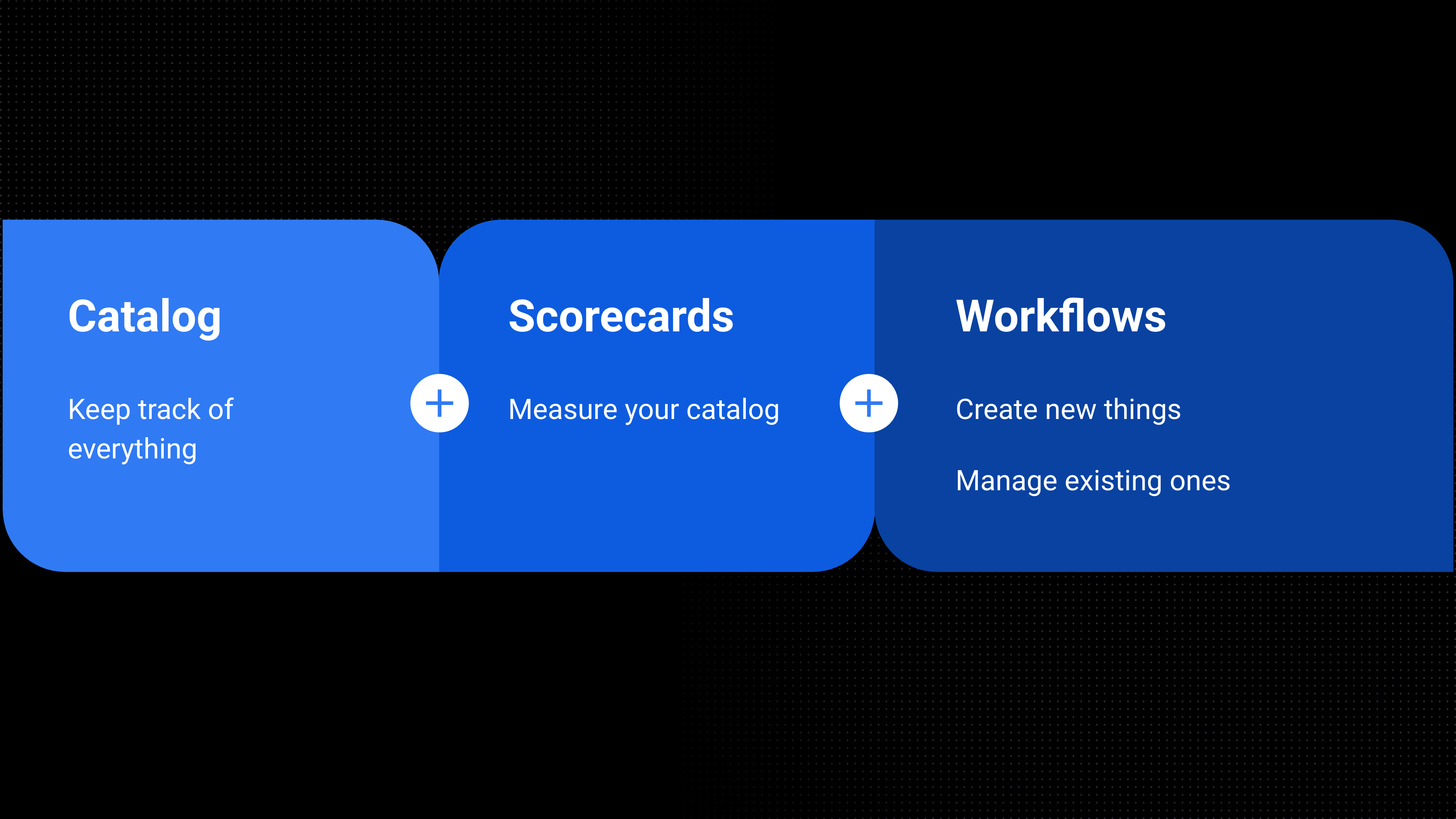 • Visibility-first: They focus a lot on showing things to users, enhancing discoverability by centralizing documentation, tools, and APIs. As well as creating Scorecards. These are all the “Explore” use-cases.
