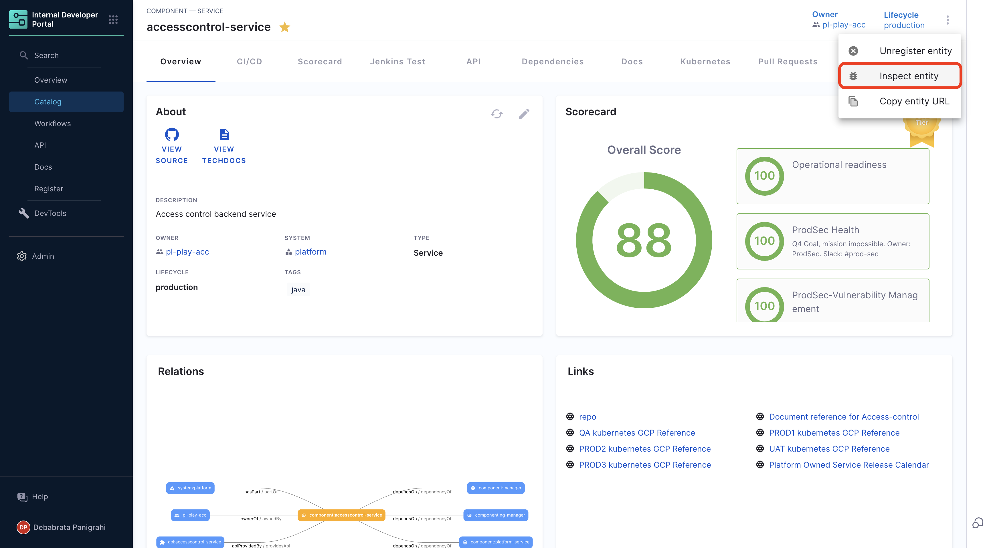 ENTITY_REF needs to be replaced with the entity path, for e.g., component:default/idp-service (kind:namespace/name format)