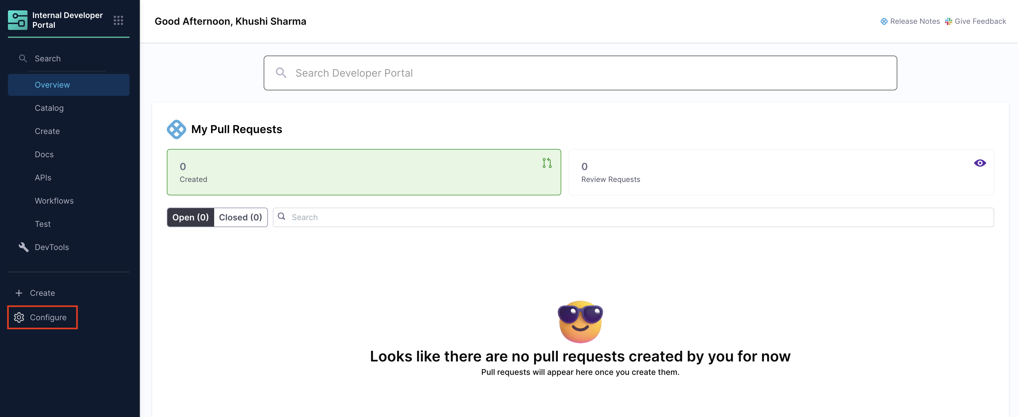 Navigate to Harness IDP and click "Configure" from the main menu.
