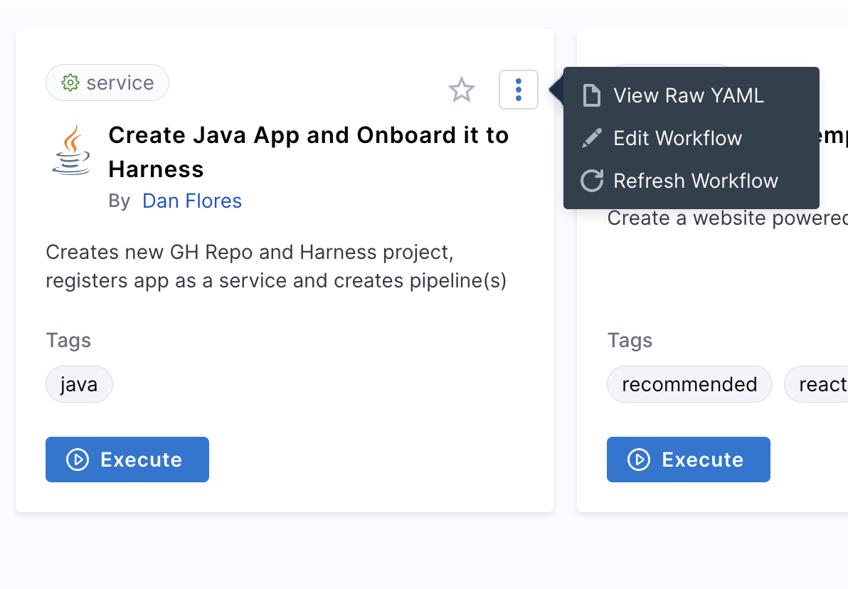 - Register New Workflow: Register a new workflow in Harness IDP.