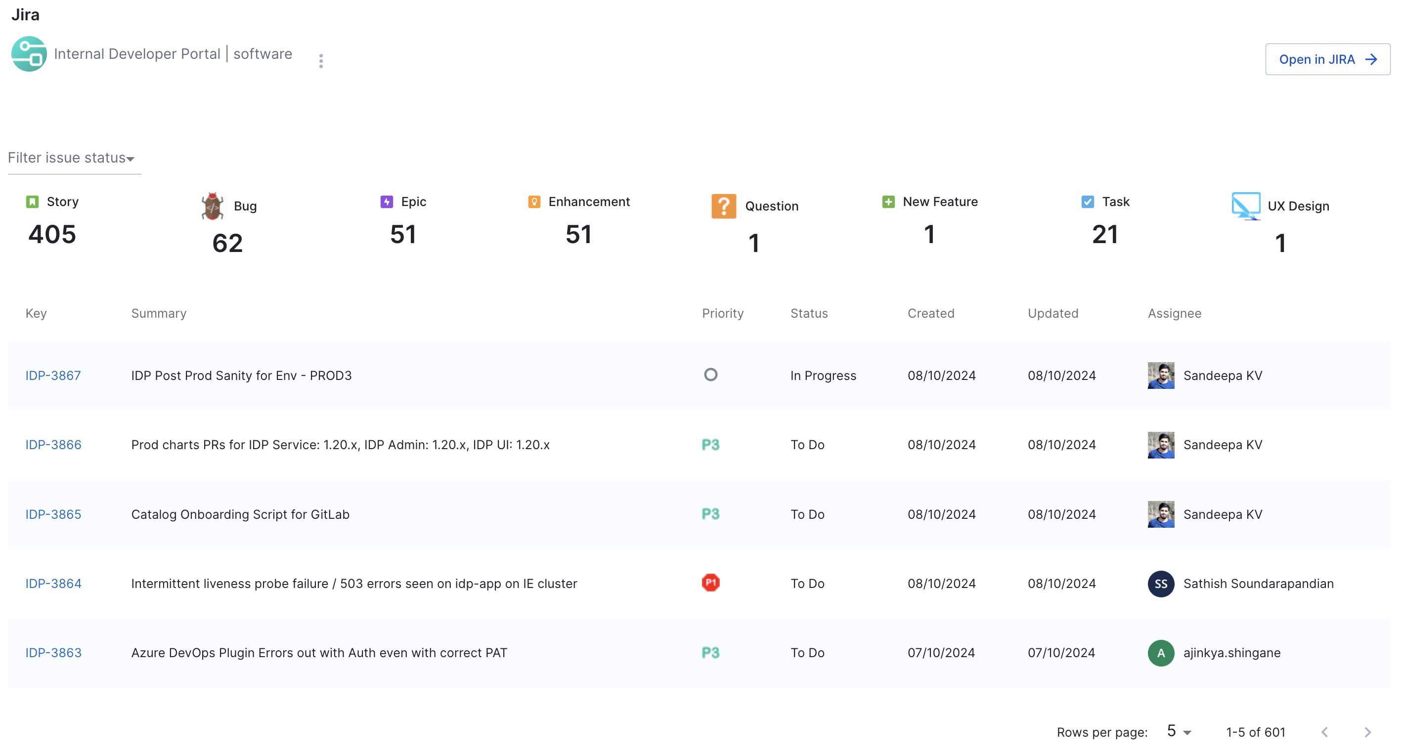 For displaying a general overview of Jira issues:
