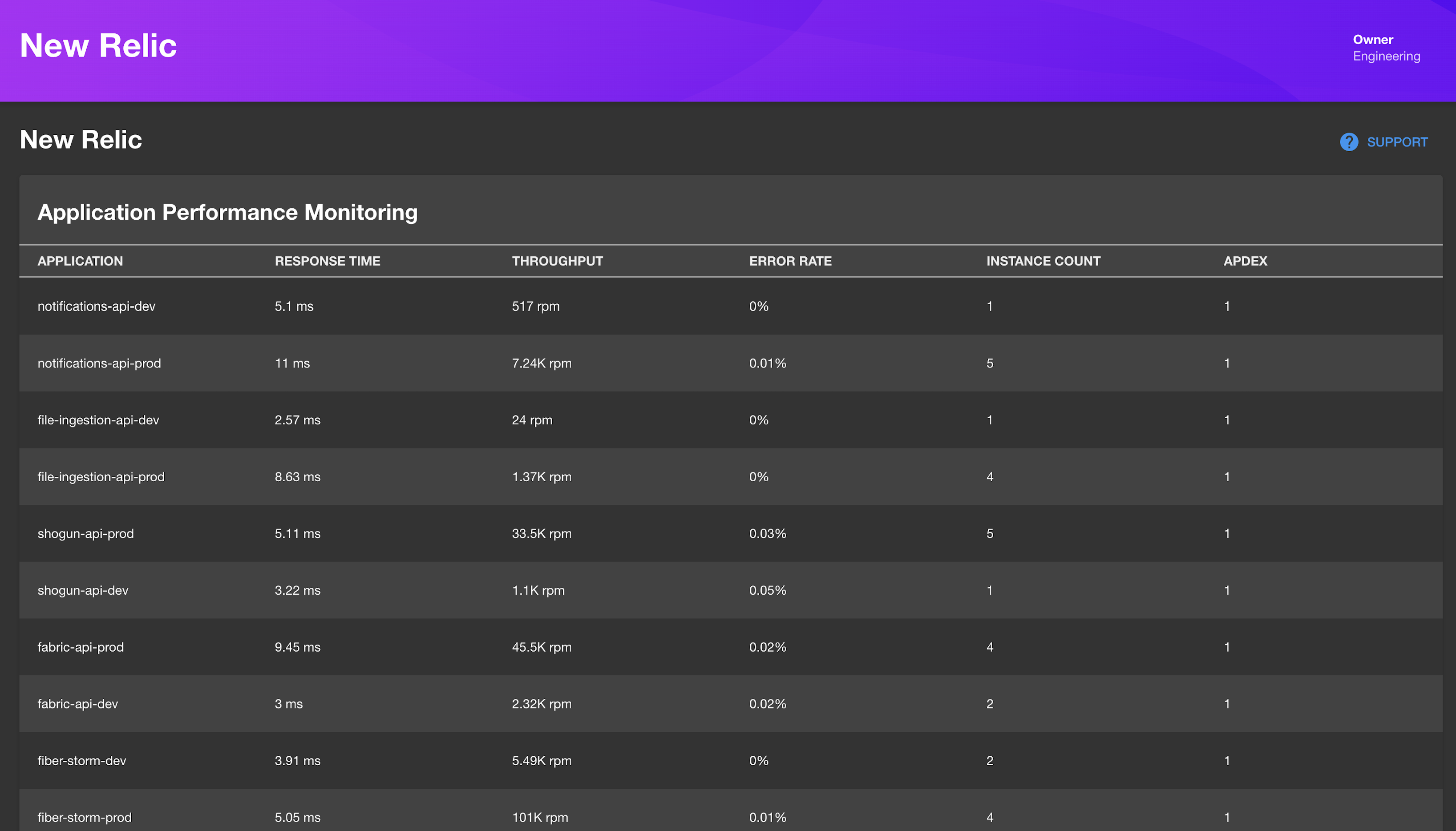 • This plugin exports a page that you can use as a New Relic page on the Sidenav to view New Relic Application Performance Monitoring (APM) data such as: