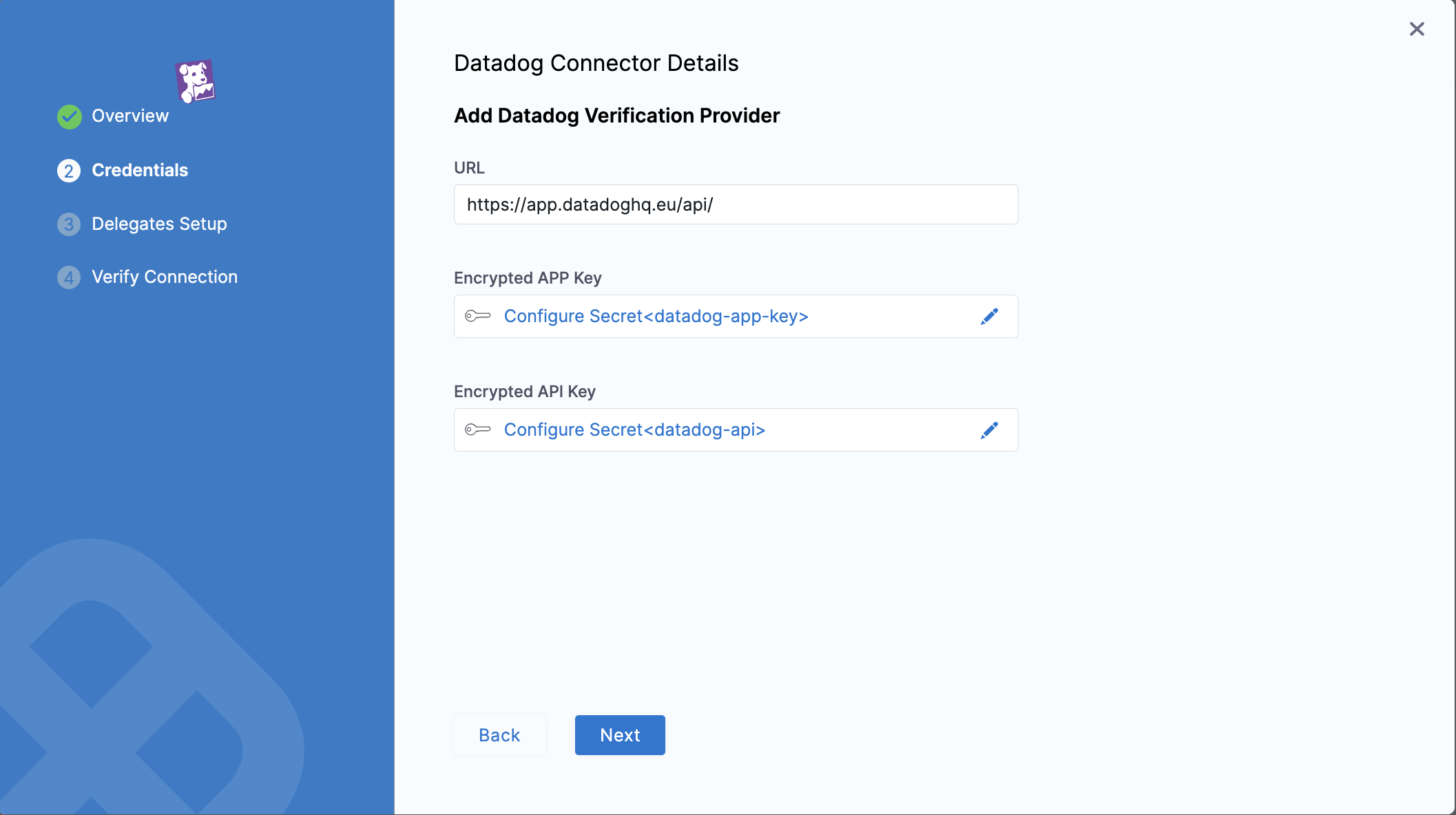 You can add a verification provider Connector inline when developing your pipeline, or separately in your Account/Org/Project's resources. Once you add the Connector, it will be available in the Pipelines of the same Account/Org/Project.