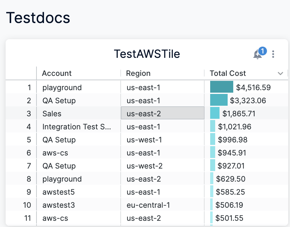 - Hover over the bell icon that appears on the dashboard tile. A numeric indicator shows how many alerts you have created for that tile.