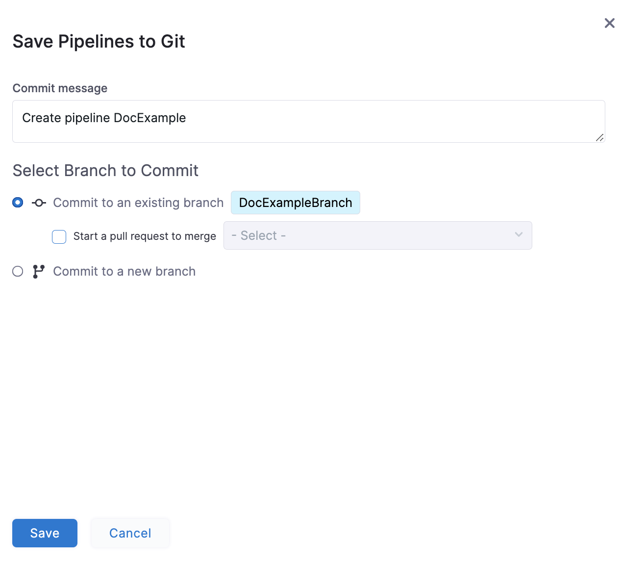 The Save Pipelines to Git settings appear.