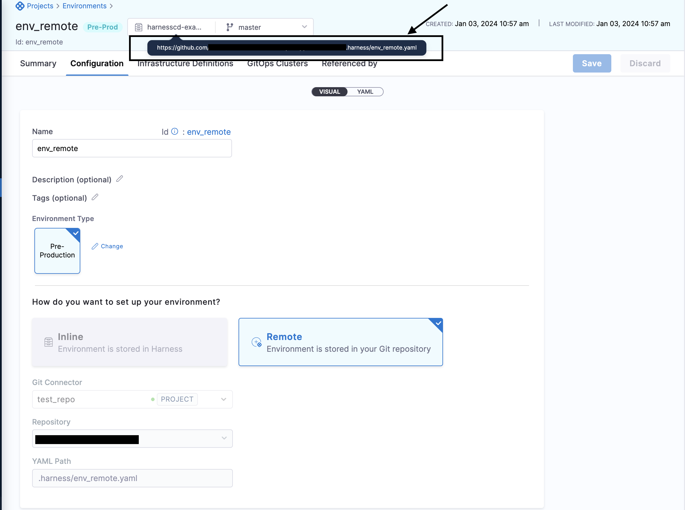 • Remote: The Harness entity is stored in Git.