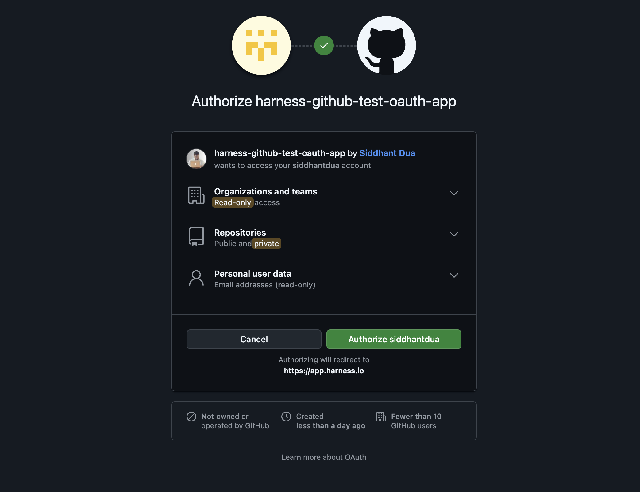 Harness supports OAuth integration for GitHub Enterprise. As a prerequisite, you need to create an OAuth App in your GitHub Enterprise instance.