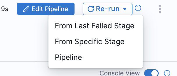 In this pipeline, stage cust_4 will fail due to incorrect shell script command. Now when you click on Re-run and under that From Last failed Stage the whole chained pipeline will run.