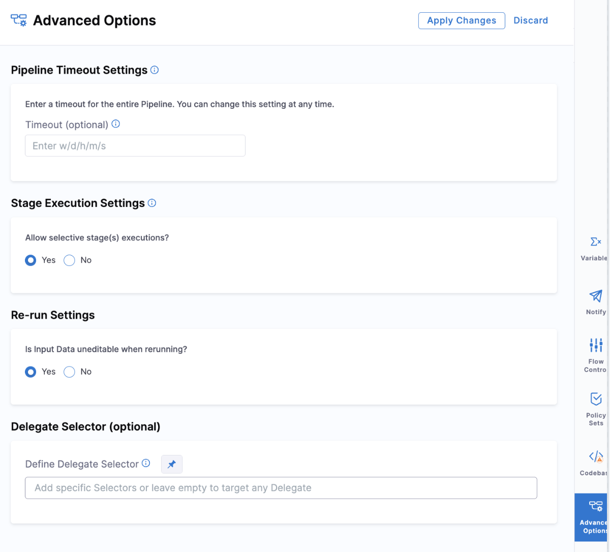 2. Select Advanced Options in Pipeline Settings In the pipeline settings, click on Advanced Options.