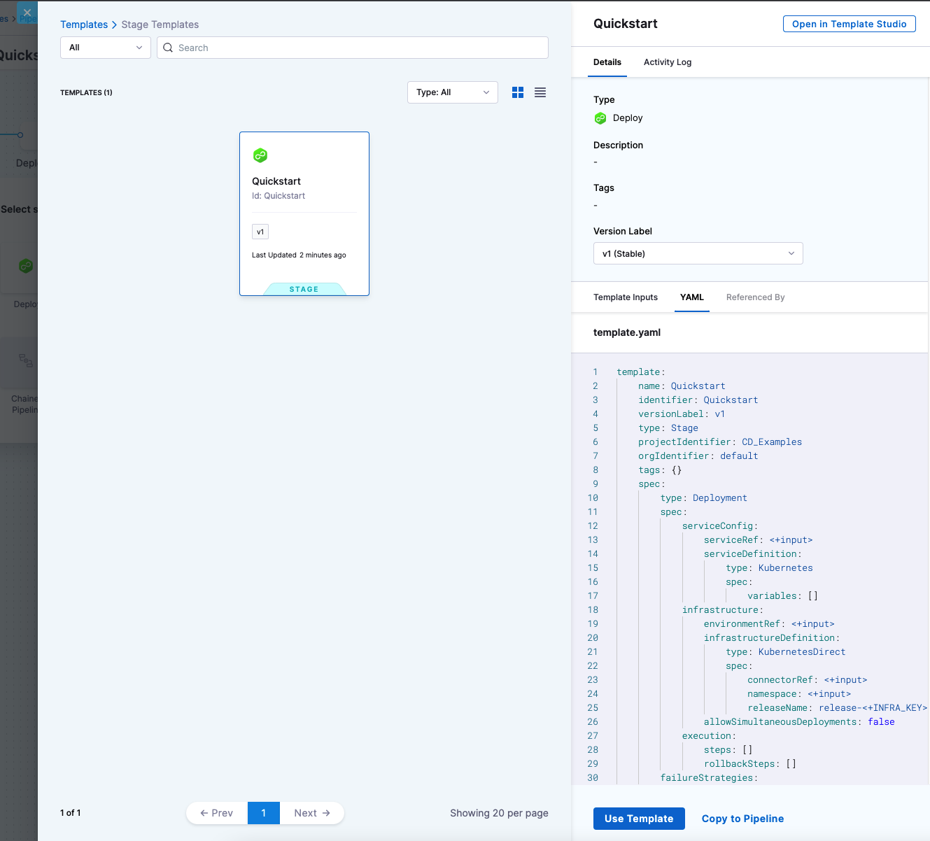 The template contents are copied to your pipeline stage. You can change any settings in the stage that you have copied from a template.