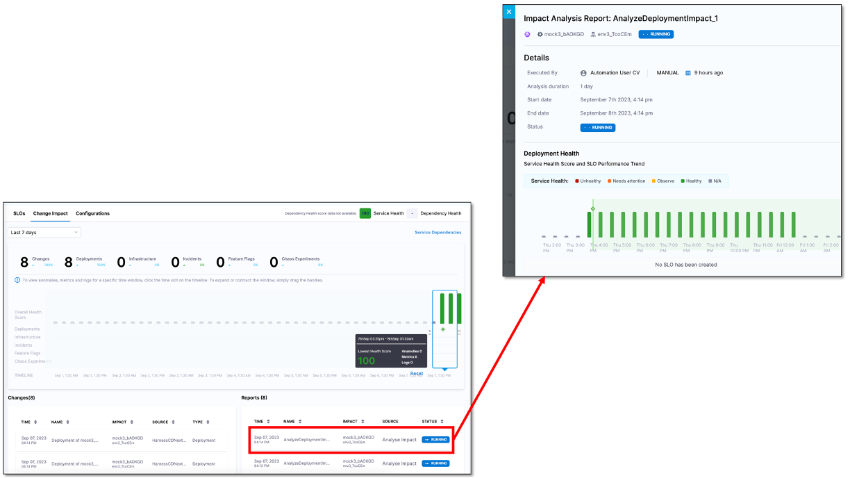 Harness helps you evaluate the impact of your deployment on the service health of a monitored service.