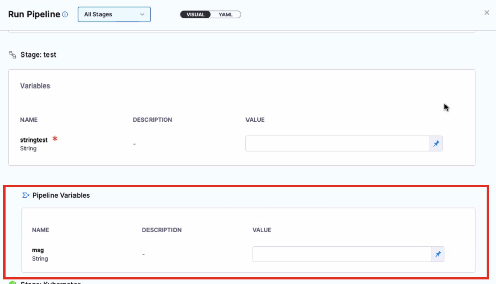 Pipeline variables were not showing up in an Input Set and Run Pipeline settings when a Pipeline template was used in a Pipeline.