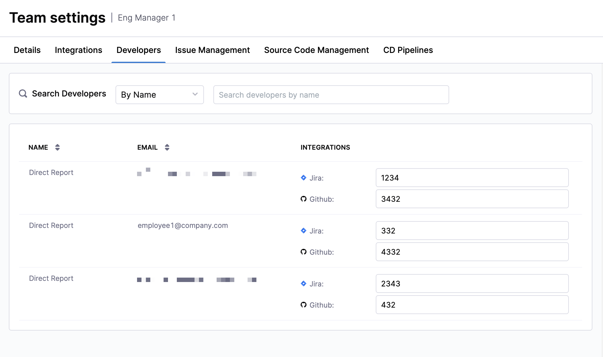 You can add shared developers on the Developers tab in Team Settings, and include contributors such as engineering managers or individual contributors who regularly work across teams without modifying Org Tree membership. This streamlines team setup, improves identity management, and ensures accurate attribution for efficiency and productivity metrics.